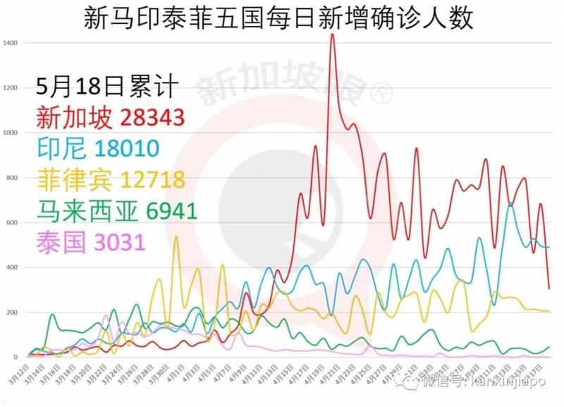 5月18日,印尼累计确诊18010例(+490),菲律宾为12718例(+205),马来西亚为6941例(+47),泰国累计3031例(+3)。