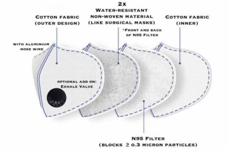 这款口罩的优点在于,每个口罩都配有N95疏水性滤芯,因此不必自己购买过滤器。