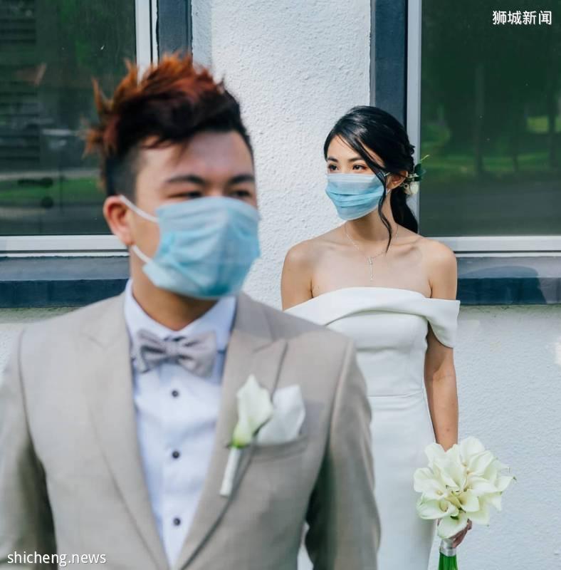 断路器第一阶段,新加坡本地一对夫妇的婚礼是这样举办的,根据政府的指示,决定任何聚会都不得超过10人,但他们仍要进行庄严的仪式-但只有在各自直系亲属的陪同下,还有他们的摄影师。