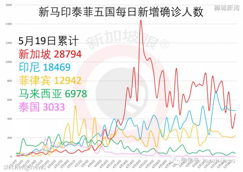 5月19日,印尼累计确诊18469例(+486),菲律宾为12942例(+224),马来西亚为6978例(+37),泰国累计3033例(+2)。
