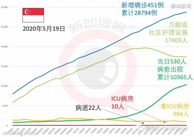 SMRT公司目前依旧在配合新加坡卫生部调查,调查女员工在碧山地铁站工作的密切接触者,其所接触的地方都已彻底进行消毒 除这名男子之外,5月19日,新加坡新增确诊451例,累计28794例。17403人在方舱或转隔离设施。在院有994人,是4月13日以来第一次降到千人以下;另有10人在加护病房(ICU);当日病愈出院530人,累计出院10365人,突破万人。病逝累计22人。