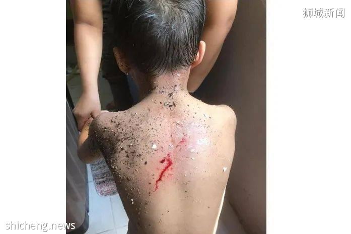 男童背部有一道血痕,检查后已无大碍,只是轻微擦伤。(取自网络)