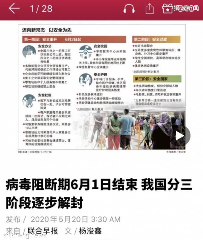 对于很多新加坡人来说,昨晚是充满惊喜的一晚。刷著刷着手机,屏幕上突然蹦出“阻断隔离不会再延期,6月2日正式解封”;“分三阶段放宽封锁恢复正常生活”等新闻。