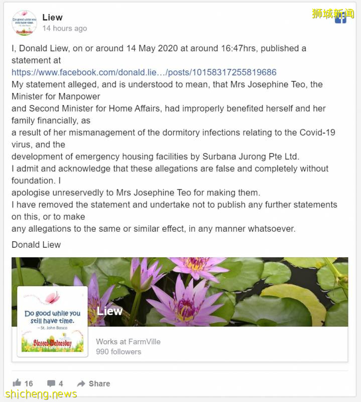 (图源:Facebook)“我承认我的指控是虚假和毫无根据的,我向杨莉明女士毫无保留地道歉。”早前,杨莉明在声明中说,她在法律上是有权利就对严重和虚假指控索赔的。但是如果他们愿意公开撤下指控并做出道歉,可避免进一步的索赔要求。