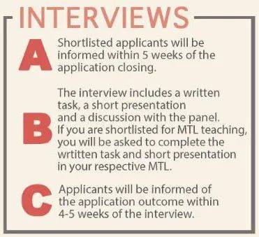 一般需要参加这类考试的多为非新加坡高等院校毕业、需要通过语言考试的学生,体育老师需要参与体育教育的专业考试等。面试详情会另外通知考生。
