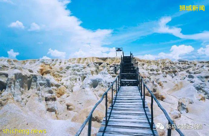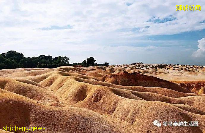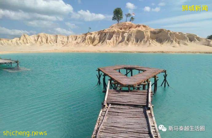 相传在南洋时期,在采金矿的时候,没有把挖出来的沙子处理好,长年累月,日晒雨淋,形成了大大小小的,形状各异的沙丘,沙丘会随着阳光的折射而变化颜色,像一片金黄色的沙漠,雨水沉积处又形成了一片片 Tiffany 蓝的小湖泊。