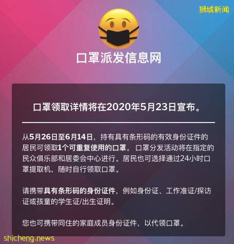 免费口罩!5月26起,新加坡全民可24小时领取升级版口罩