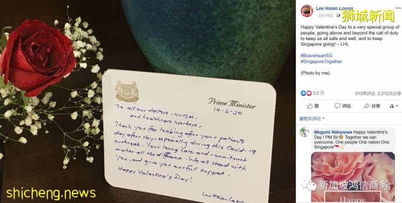 李显龙对医护人员说:“谢谢你们日以继夜地照顾你们的病患,尤其是在这新型冠状病毒暴发期间。你们无微不至的照顾和对工作的投入,让一切变得不同。我们也会给你们全力的支持。情人节快乐!”