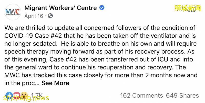 政府提供免费的医疗救治,外劳中心组织MWC为他筹集捐款等等......当他可以从冠病的魔爪下喘口气时,他就想到要拍个视频传达一下自己的激动~