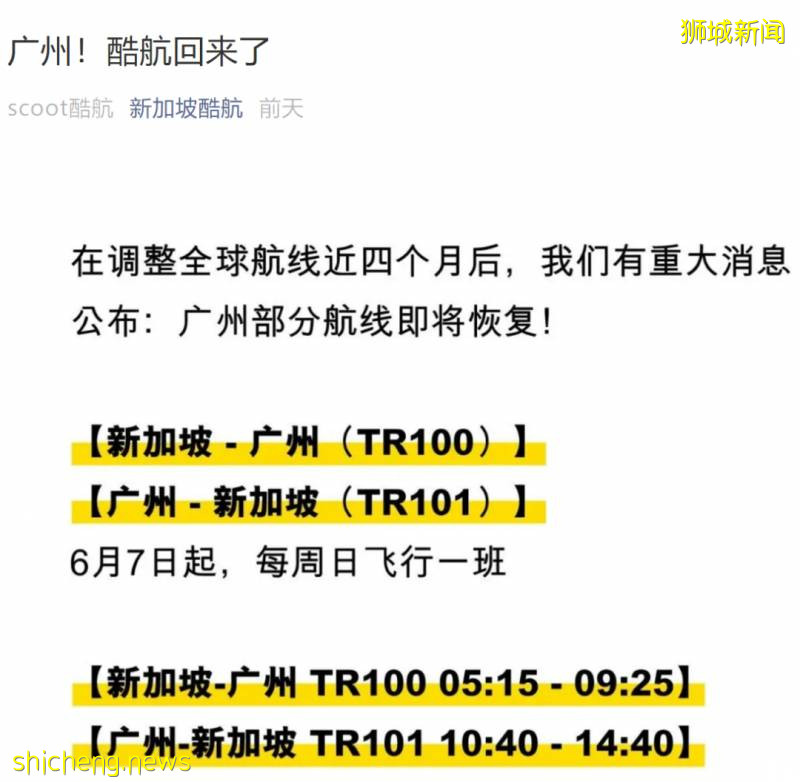 在与中国停航将近4个月之后!复航广州可以说是一个重要的信号:新加坡与中国的航班正在逐步恢复中!