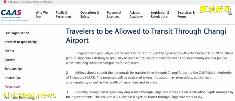 (来源:caas.gov.sg)从2020年6月2日起,将逐步允许海外旅客通过樟宜机场过境。