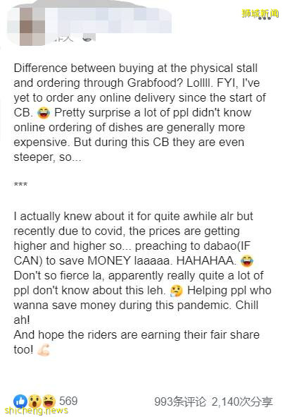 网友揭秘:阻断期间新加坡外卖送餐VS自己打包,价格居然贵了一半