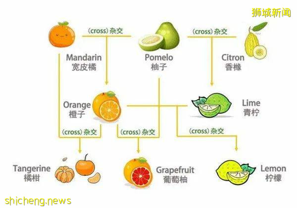生出了橙子、柑、葡萄柚、柠檬等等。
