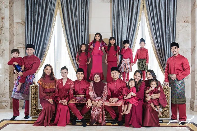 开斋节的这一天就相当于华人的新年,往年我们会看到很多马来家庭穿着同样颜色的传统服饰一起出门。这就是马来家庭团结的象征。