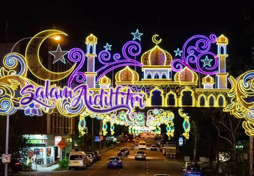 今年开斋节灯饰横跨芽笼,沈氏道和樟宜路,总长约1.5公里。