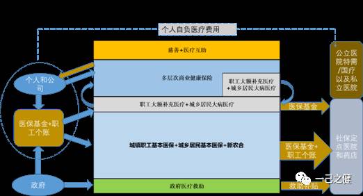 熟悉中国社保体系的读者可能看到上图会感觉比较熟悉,其实新加坡的医疗体系跟中国的医疗保障体系比较类似,主要的区别在于一是中国的社会医保是职工和城乡分类保障,待遇与缴费挂钩,基金分别建账、分帐核算的“现收现付制”体系,而新加坡医保并未有如此分层。二是新加坡约七成的基本健保(MediShield Life)是由指定的商业保险公司代为经办,而中国的商业保险公司主要经办业务还集中在职工大额补充和城乡居民大病医疗范畴,并未过多介入到基本医保的经办当中。三是在最新的《中共中央国务院关于深化医疗保障制度改革的意见》中将慈善和医疗互助纳入医疗保障制度体系,可以预见未来中国的医疗保障制度体系会更加多样化。