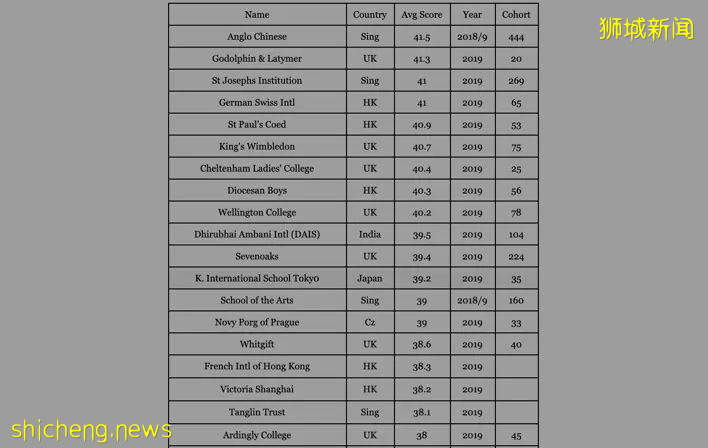 根据国际文凭组织学院的排名(IB Schools),新加坡提供 IB 课程的学校有四所排名在全球前二十名。