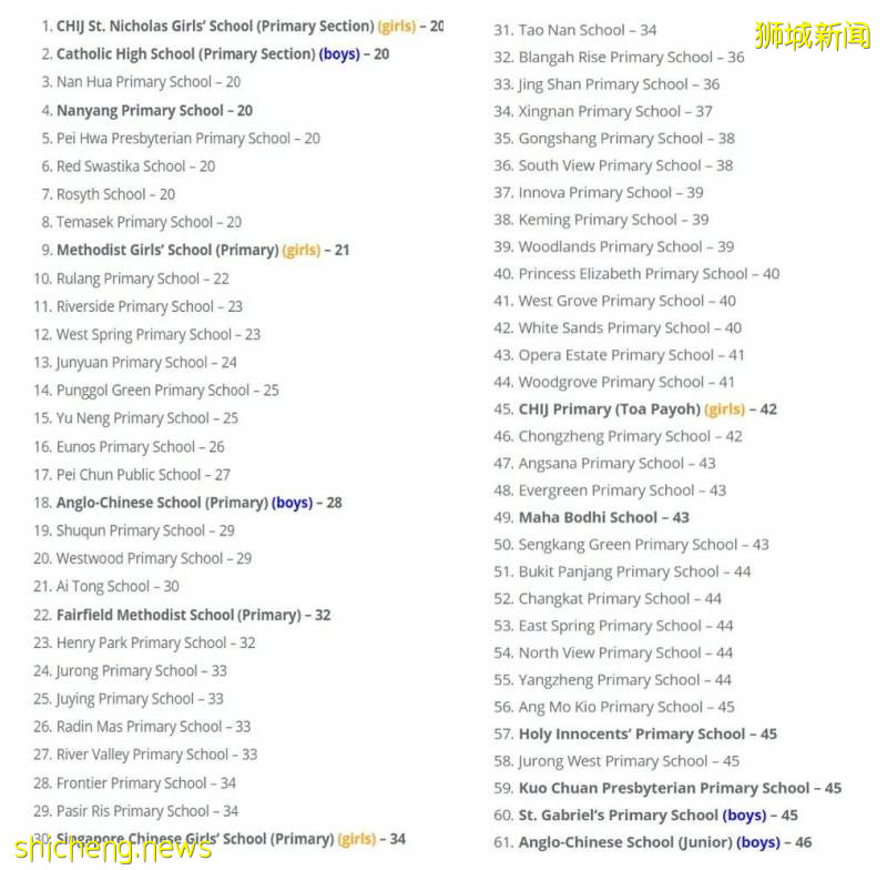 以下列表是前61间新加坡的小学学历排名,只为读者参考。
