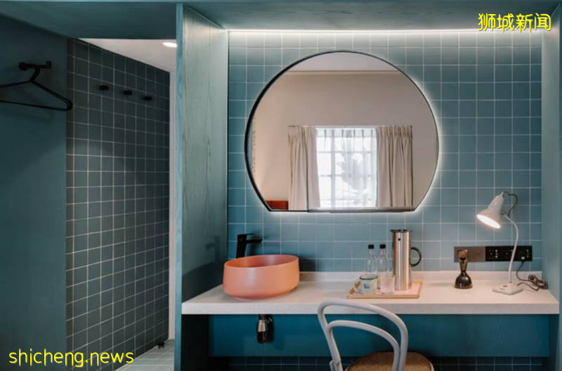 此外,餐厅内部以时髦复古装饰为主,跳色主轴延伸到相对简洁的客房。