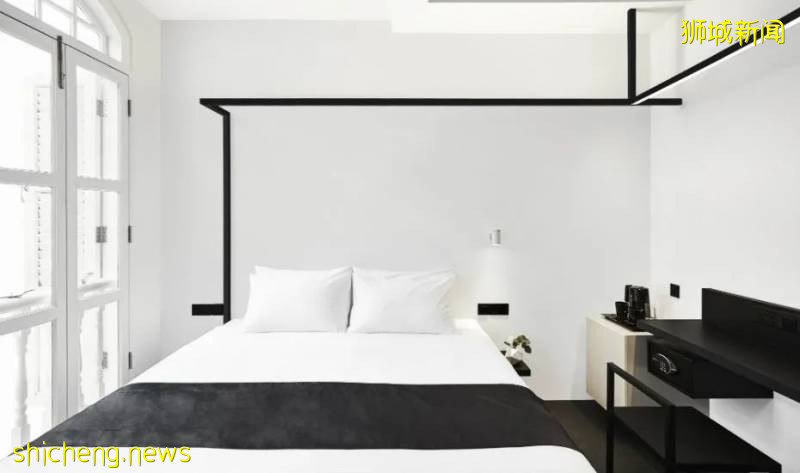 这家位于新加坡的Hotel Mono最大特色就在于零彩度,在里面只找的到黑、白两种颜色,而如此摩登的概念风格下,从新加坡的传统店屋建筑一口气改成为现在的模样。外观部分没有更改风格,但同样将色彩都拿掉,一楼全部漆成黑色,二、三楼则是白色的。