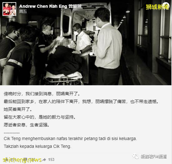 但是由于马来西亚和新加坡的旅行限制,唐的家人无法来新加坡探望她了,她的身体也不允许她离开医院。