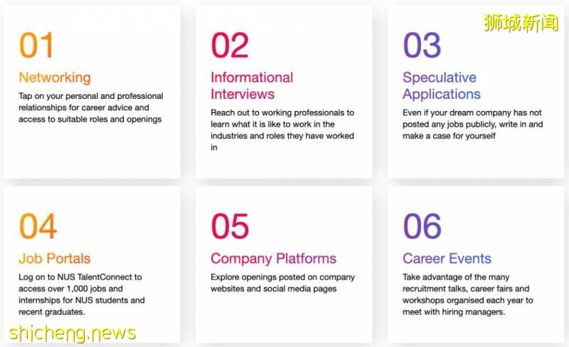 但令人悲伤的是,只有20%-30%的岗位信息会被发布在网上。在新加坡等地区,当出现空缺职位时,公司更喜欢先在已有员工中寻找合适的人选或接受员工的内推(internal referral)。因此,找工作不能单凭这一种方法,而要多管齐下。