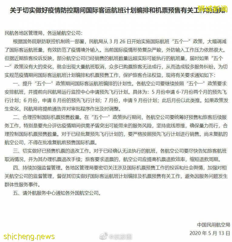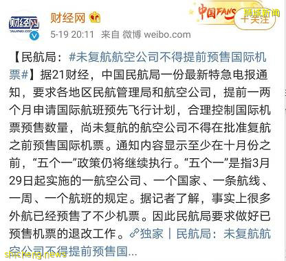 而根据财经网报道,民航局目前也要求各地区民航管理局和航空公司,提前一两个月申请国际航班预先飞行计划,合理控制国际航班预售票数量,不得批准未复航的航空公司的机票预售。