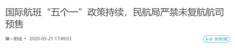 据第一财经报道,多家航空公司近日陆续公布的6月份国际航班计划显示,民航局从3月底开始实施的“五个一”政策,仍将在6月持续。