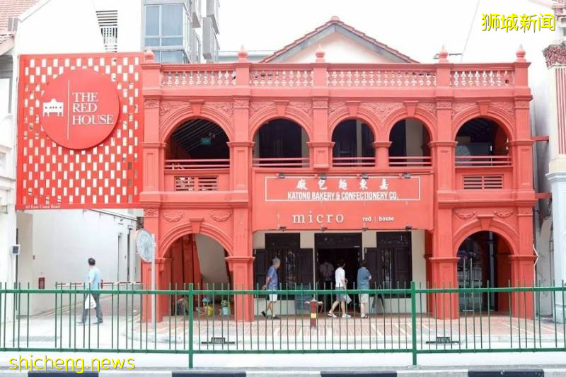 1923年开业的红屋“嘉东面包厂”(Katong Bakery & Confectionery)楼上住家,楼下店面则由犹太人售卖瑞士卷(Swiss roll),咖喱角和面包。1925年店主去世后,由海南籍人士接手,推出了新加坡第一个三层结婚蛋糕。为新人婚礼增添了甜蜜与浪漫。