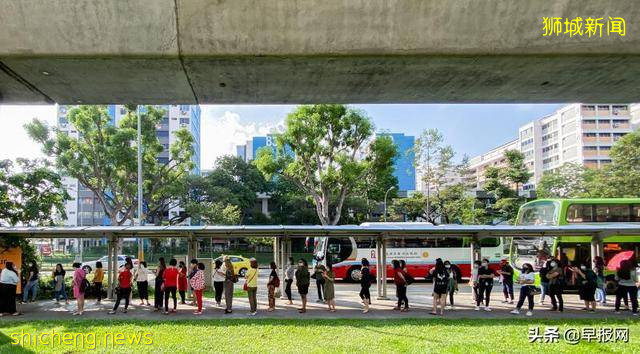 新加坡学前教育中心职员本月14日起开始接受冠病检测。图为一个报到地点出现了等候检测的人龙。(林泽锐摄)