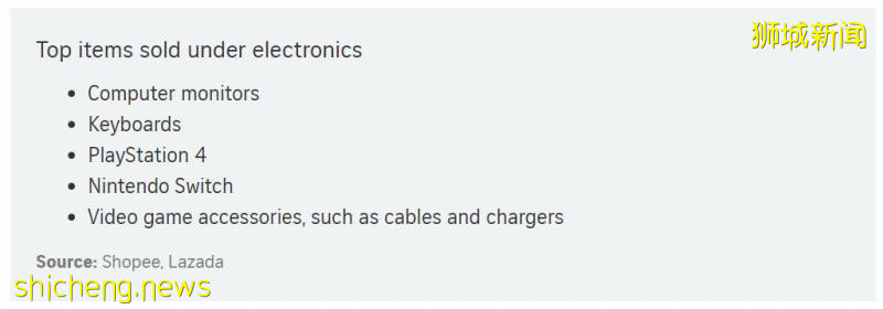 电子商务平台Lazada表示,除了游戏机外,各种游戏配件,包括电缆、充电器、控制器和外壳,也成为最受欢迎的产品。