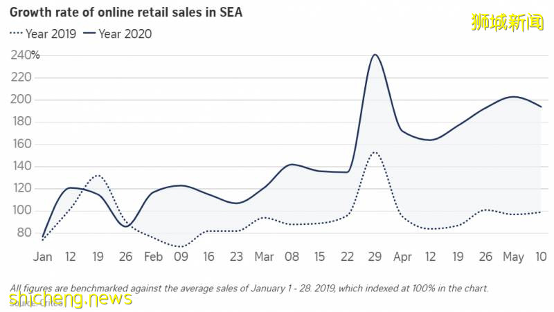 根据平台Criteo的数据,在截至5月11日的一周中,东南亚的电子商务收入同比猛增96%。