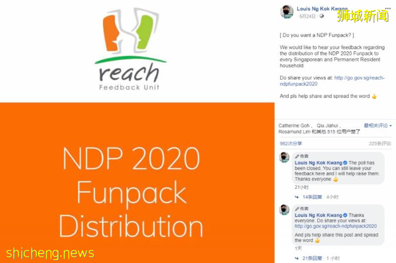 根据新加坡今日报(Today)的报道,虽然尚不清楚这次民情联系组所发起的网络问卷调查是从何时开始,但此前曾呼吁让国庆庆典观众选择是否领取礼包的义顺集选区议员黄国光,已在25日通过Facebook页面发帖贴出了调查的连结。