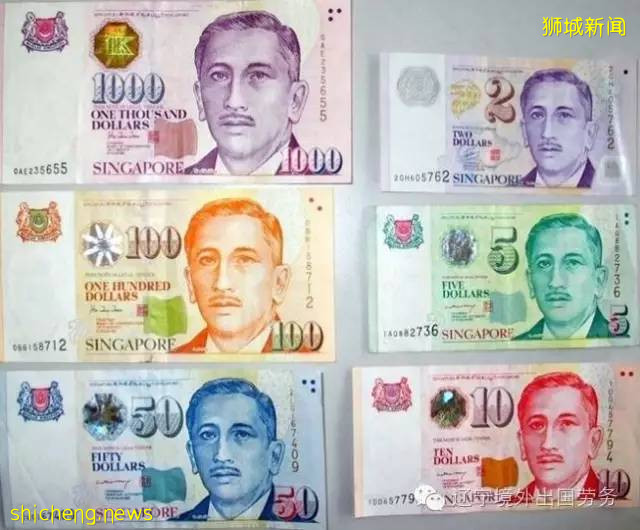 新加坡元面值分为 2 新元、5 新元、10 新元、50 新元、100 新元、1000 新元和 1 万新元。硬币的面值是 5、10、20 和 50 分以及 1 新元。