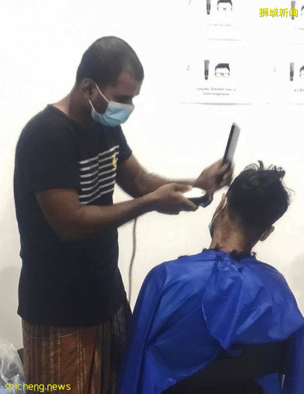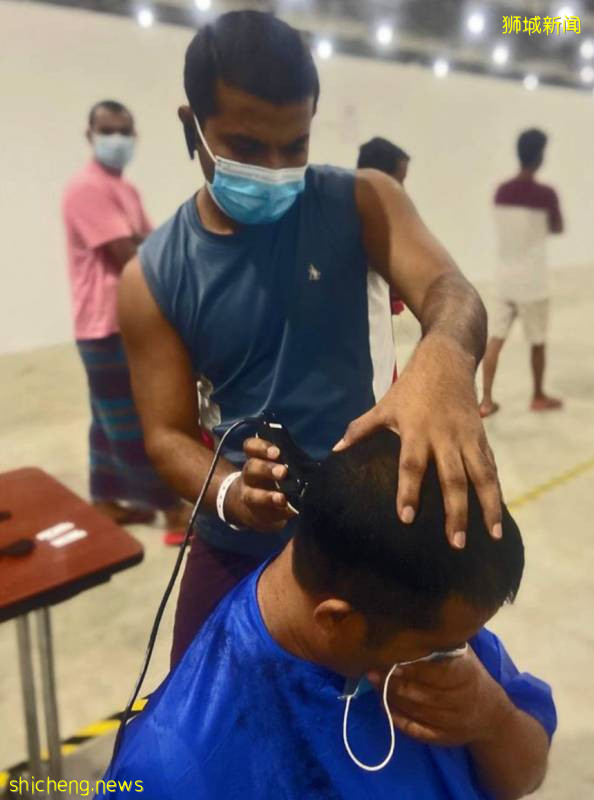 同样,目前居住在新加坡世博会社区关怀设施中的农民工在当地逗留期间一直在修剪同胞的头发。