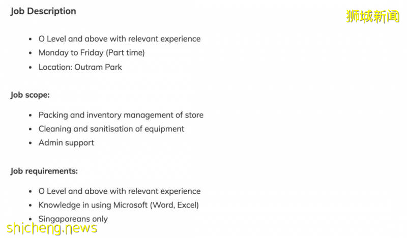 现招聘兼职销售助理,薪资S$1000-S$1500,不需要工作经验。