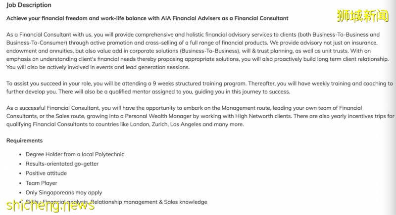 现招聘Financial Consultant,薪资S$4000-S$8000,要求拥有金融分析,关系管理和销售相关知识。