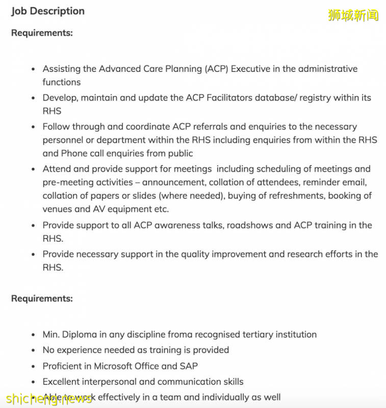现招聘Admin Assistant,薪资S$2000-S$2800,负责协助并处理ACP相关的事务。