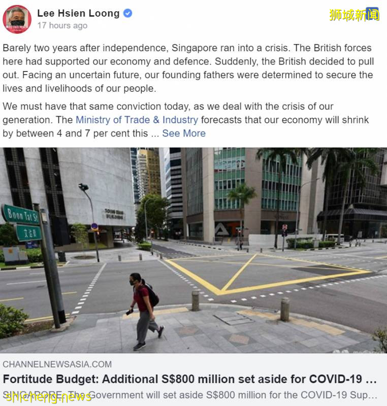 傍晚李显龙总理也发了Facebook,对财政预算案做出了评论,高度肯定了财政补贴对新加坡疫情后的经济提振作用。并且说出了非常鼓舞人心的话。