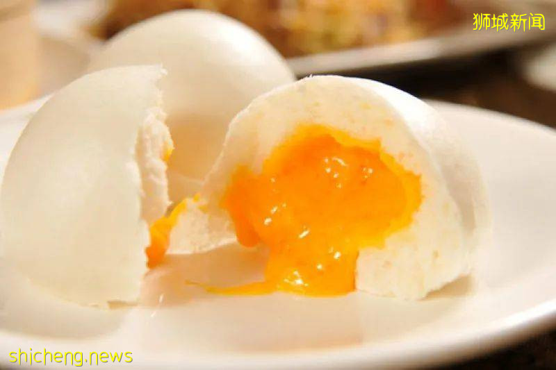 咬上一口,那流动的金黄色内陷立刻流淌而出,