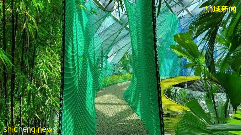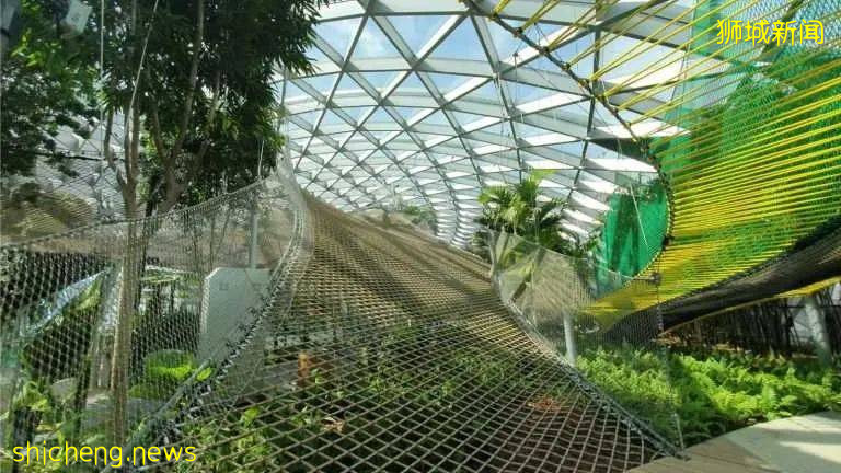 有蹦跳网和步行网两种,蹦跳网道不同于传统蹦床,不以铁架支撑,大人和小孩都可以在上面尽情玩。步行网是离地25米高空,长50米的网状步道,感受刺激之外还可以欣赏星耀樟宜全景。