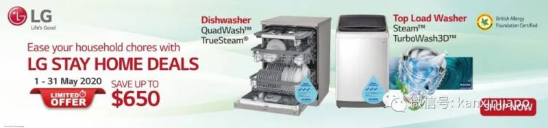 购买LG品牌的洗衣机、洗碗机能让您做家务时也能轻轻松松,还能省至650新币。