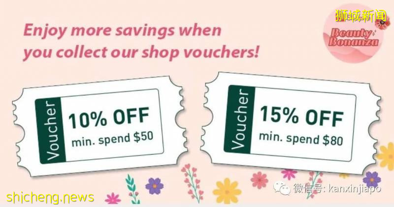 消费50新币的保养品可享有10%折扣,消费80新币则可享有15%折扣。