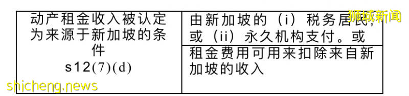 动产比如租赁机器设备等。动产租金收入如果符合所得税法第12(7)条的条件, 则被认为是来源于新加坡。