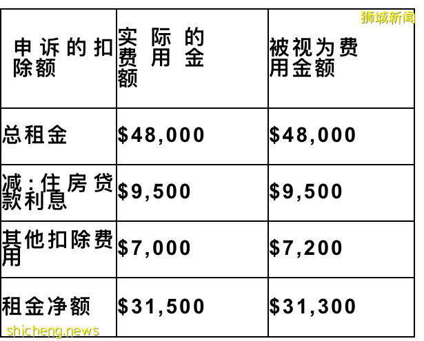 以下是根据实际发生的费用计算净租金以及选择按视为费用的一笔款额申诉的情况的比较: