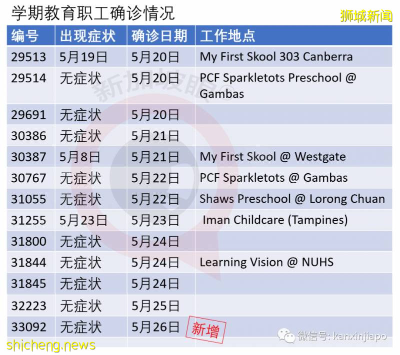 新加坡5月28日追查到2个新感染群,都在工业区,为: