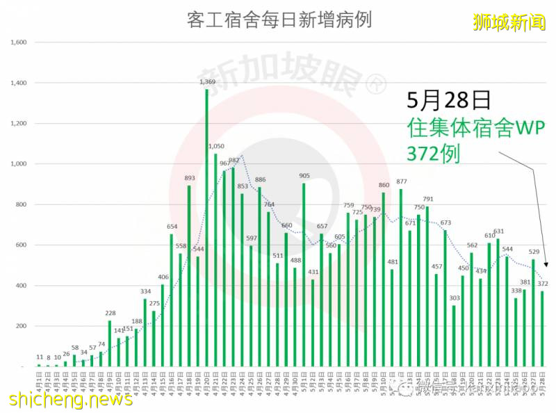 住在大型集体宿舍和工厂改建宿舍的客工(WP)新增确诊372例。