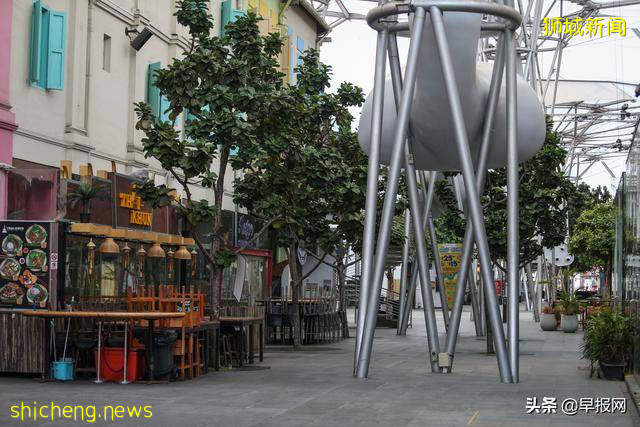 聚集多家餐馆与娱乐场所的新加坡克拉码头受到管控措施的影响,5月4日显得异常冷清。(档案图)