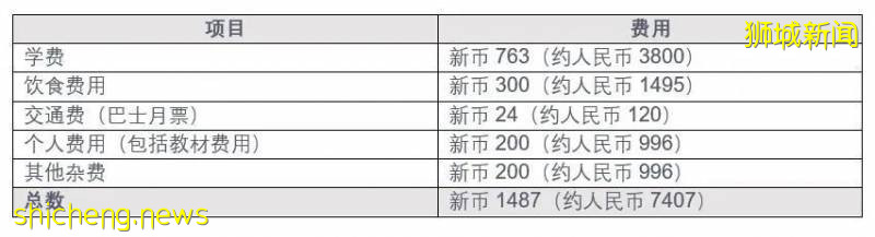 由于学校类型与设施不同,每月学费介于670新币至1438新币之间 (约3335-7155人民币之间)。