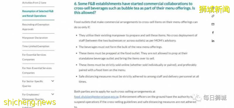 根据政府设立供企业在疫情期间查询资料的网站,如果饮料店想要营业,需和食品店能向新加坡企业发展局申请相互合作,但饮品必须是在食品店内准备,且只能提供线上服务出售。